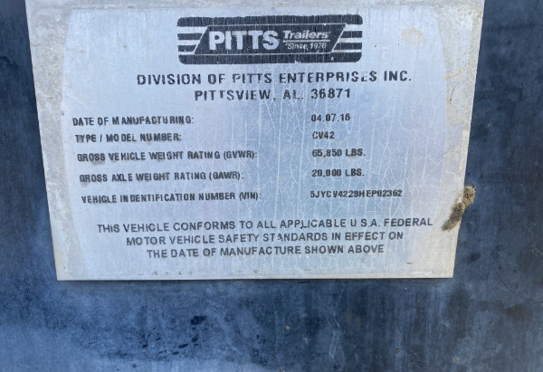 2016 Pitts CV42 Chip Van 2016 · Available · Price $30,000 Closed top 42' length 96" wide 11R24.5 tires